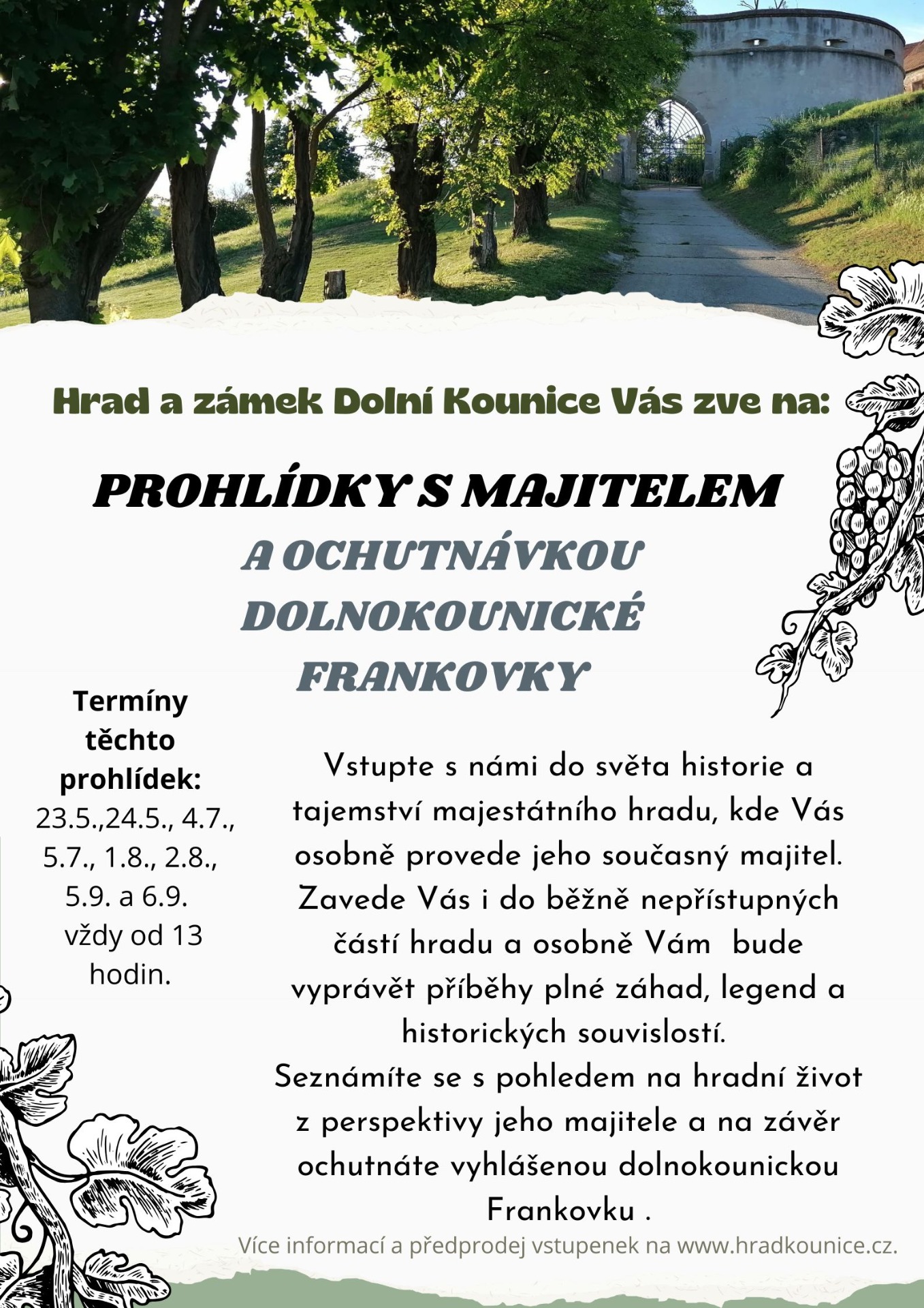 23.5. a 24.5. vždy od 13 hodin - Speciální prohlídka s majitelem hradu a ochutnávkou Dolnokounické Frankovky